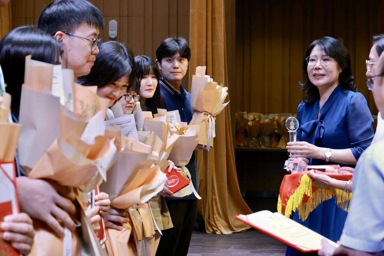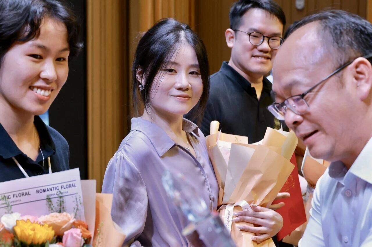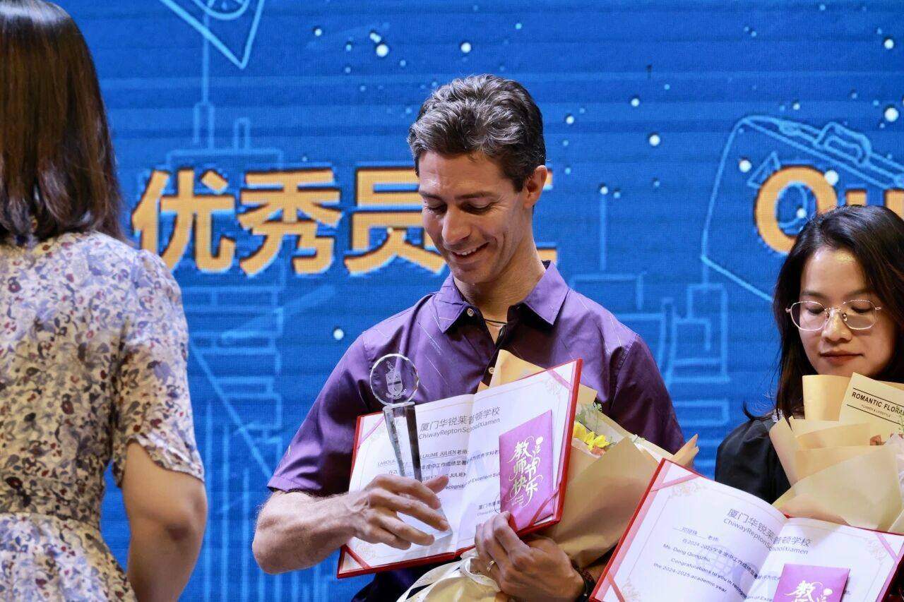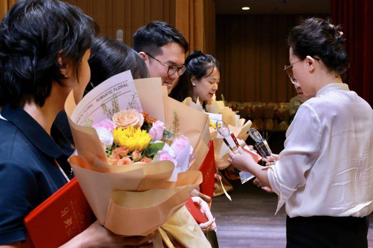 鲜红的证书映着获奖者的笑容,闪亮的奖杯照亮着努力的方向,也激励着更多同事携手进步。值得一提的是,领奖台上不仅有一线教师,还有各运营部门的优秀员工 —— 从守护校园安全的后勤人员,到保障孩子健康的校医,再到默默支撑校办、人事、财务、市场工作的幕后同仁,周校长为他们一一送上荣誉与感谢:“教学工作的顺利开展,离不开每一位幕后工作者的付出,你们也是学校最宝贵的财富!” 台下持续的掌声,让 “每一份努力都值得被看见” 的温暖,浸润整个礼堂。