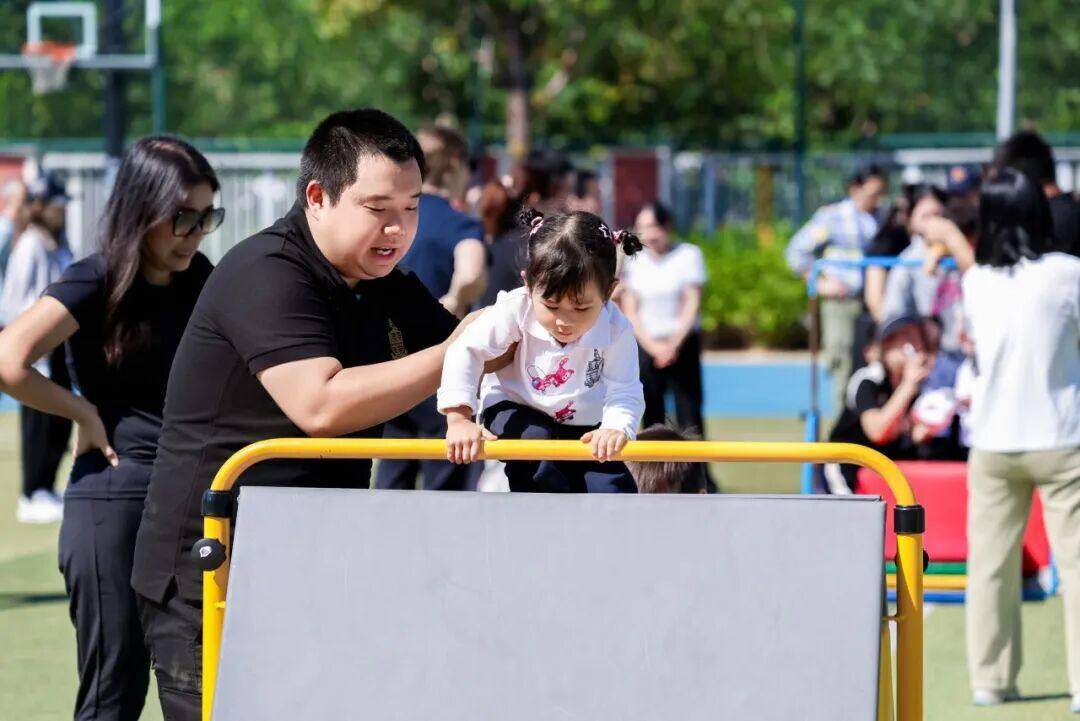 赛道上设置了翻越山坡、平衡木、跳跃、翻越、下跳等,孩子们灵活奔跑、穿梭,家长在旁拍手鼓劲,遇到孩子犹豫时,伸手牵住他们一起完成挑战,亲子陪伴让运动充满温暖。