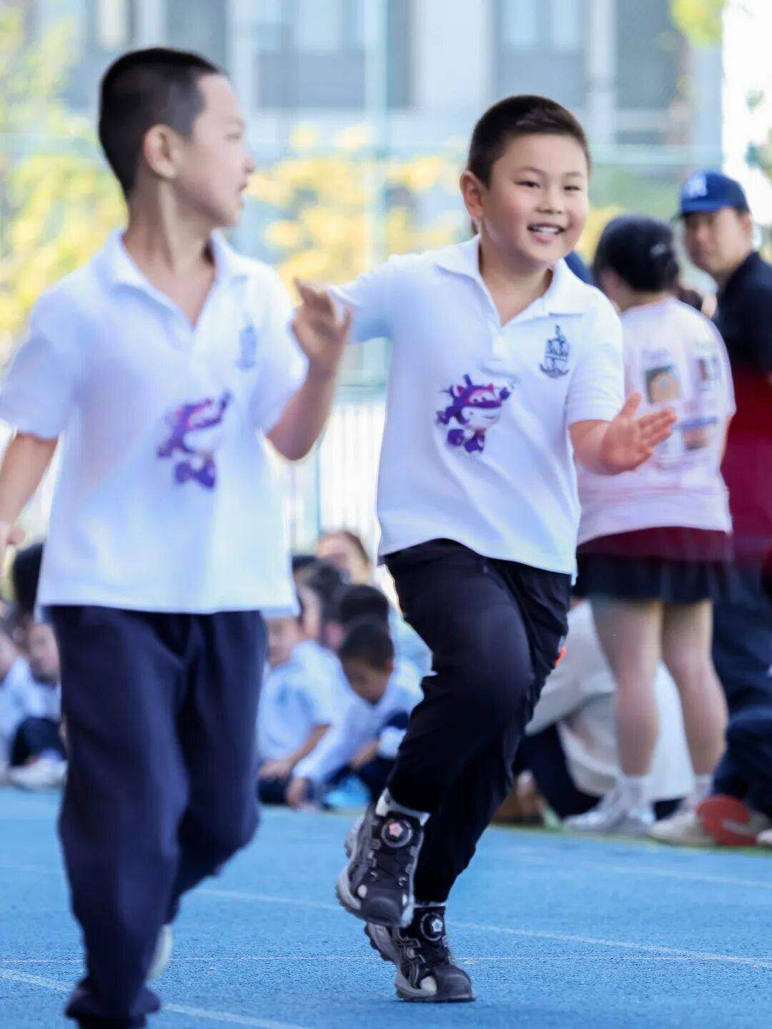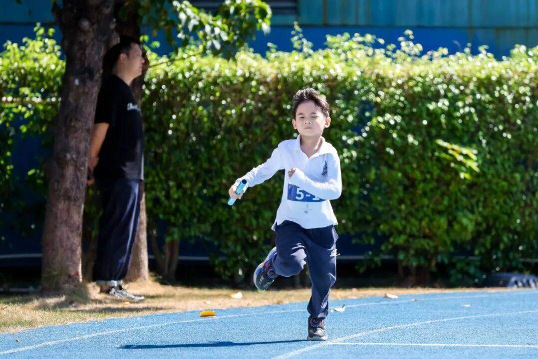 K1的孩子们攥紧小手冲刺30米,稚嫩步伐里满是坚定;K3的选手们化身“小猎豹”,50米赛道上摆臂奔跑,加油声此起彼伏;在K2的接力赛中,孩子们出汗也不停歇,冲线时收获同伴们的欢呼;K3 的4×100米接力赛压轴登场,小队员们默契交接接力棒,最后一棒冲线时,他们相拥欢呼,赛场瞬间沸腾。