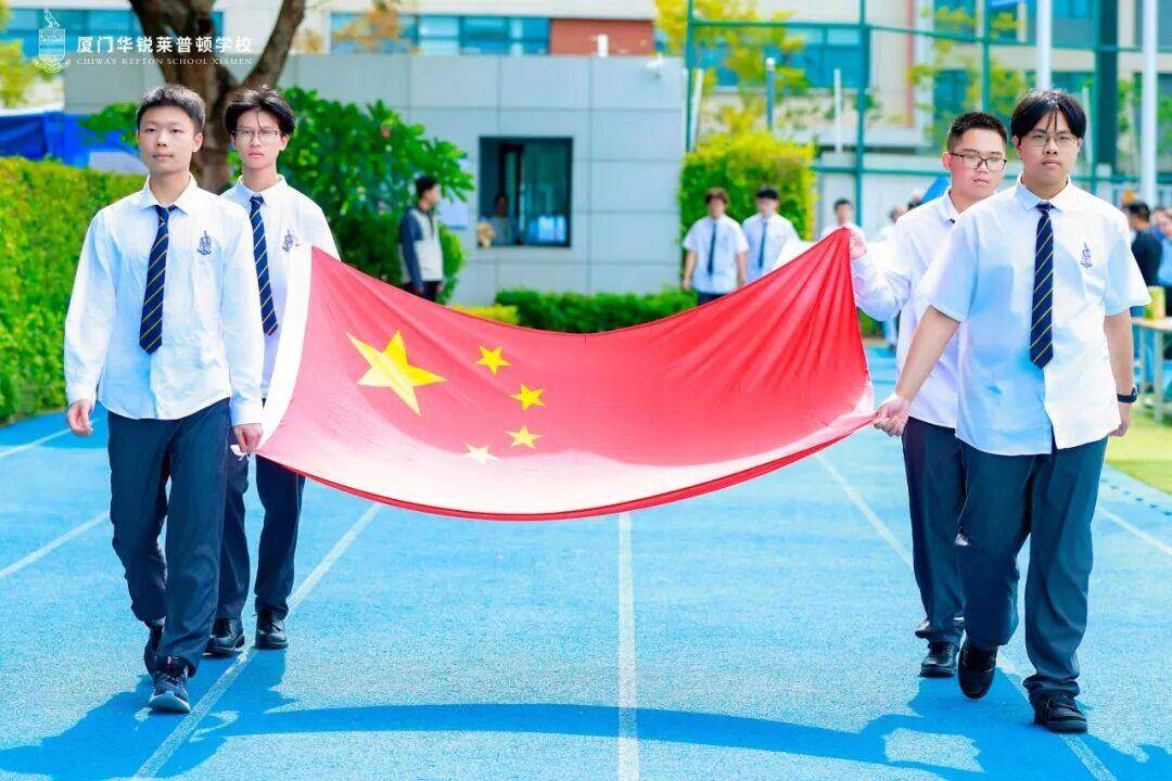 全体肃立,齐唱国歌,五星红旗冉冉升起,映照每一位师生炽热的家国情怀。