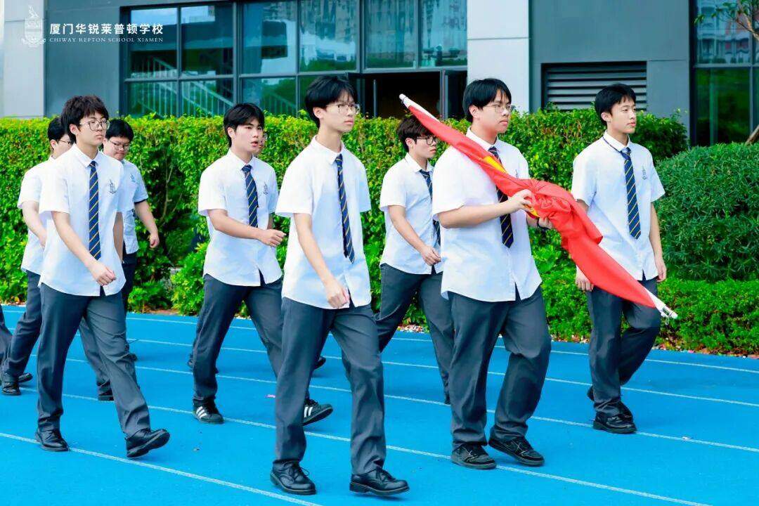 全体肃立,齐唱国歌,五星红旗冉冉升起,映照每一位师生炽热的家国情怀。