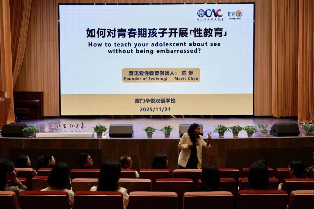 厦门华锐双语学校初中部特邀“育见爱性教育创始人陈静”(联合国青春期性教育课程研发者、《青春期硬核性教育》作者),同步开展学生性教育课程与家长工作坊,以IB MYP全人教育理念,为学子青春期成长筑牢认知与共育的双重基石。