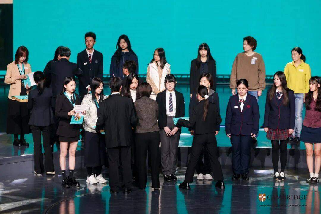 颁奖典礼上,剑桥大学国际考评部国际教育集团董事总经理Rod Smith先生与英国驻上海总领事Matthew Burney先生先后致辞,向获奖学子表示祝贺。在随后举行的“中国顶尖奖”颁奖环节中,Eva Wang同学自信登台,从剑桥官方代表手中接过了这份象征卓越学术成就的荣誉证书及奖杯。获奖者多数来自于北京、上海、深圳等地的顶尖国际学校的学子。