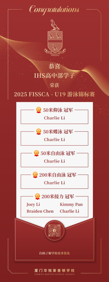 在本月底的FISSCA游泳邀请赛中,IHS高中游泳队的健儿奋勇拼搏,凭借出色表现斩获50米仰泳、50米蝶泳、50米自由泳、200米自由泳多个单项第一名,展现了过硬的专业素质和顽强的拼搏精神。