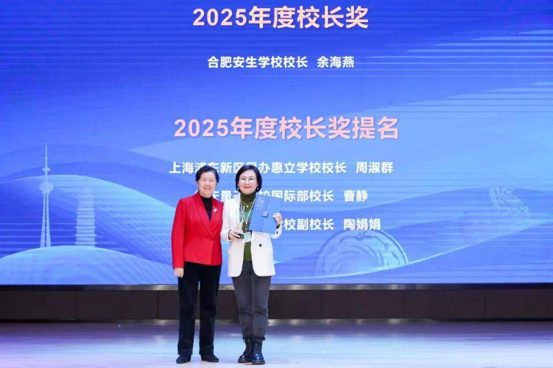 合肥安生学校校长余海燕获得校长奖,上海浦东新区民办惠立学校校长周淑群、重庆量子学校国际部校长曹静、南昌天行创世纪学校副校长陶娟娟获校长奖提名奖;