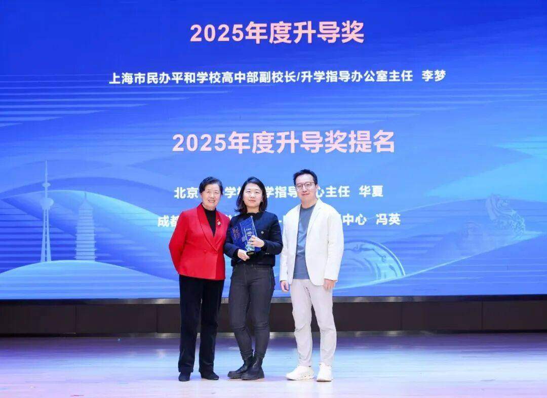 上海市民办平和学校高中部副校长/升导中心主任李梦获得升导奖,北京十一学校升学指导中心主任华夏,成都外国语学校AP/A-Level课程中心AP项目升学指导老师冯英获升导奖提名奖;