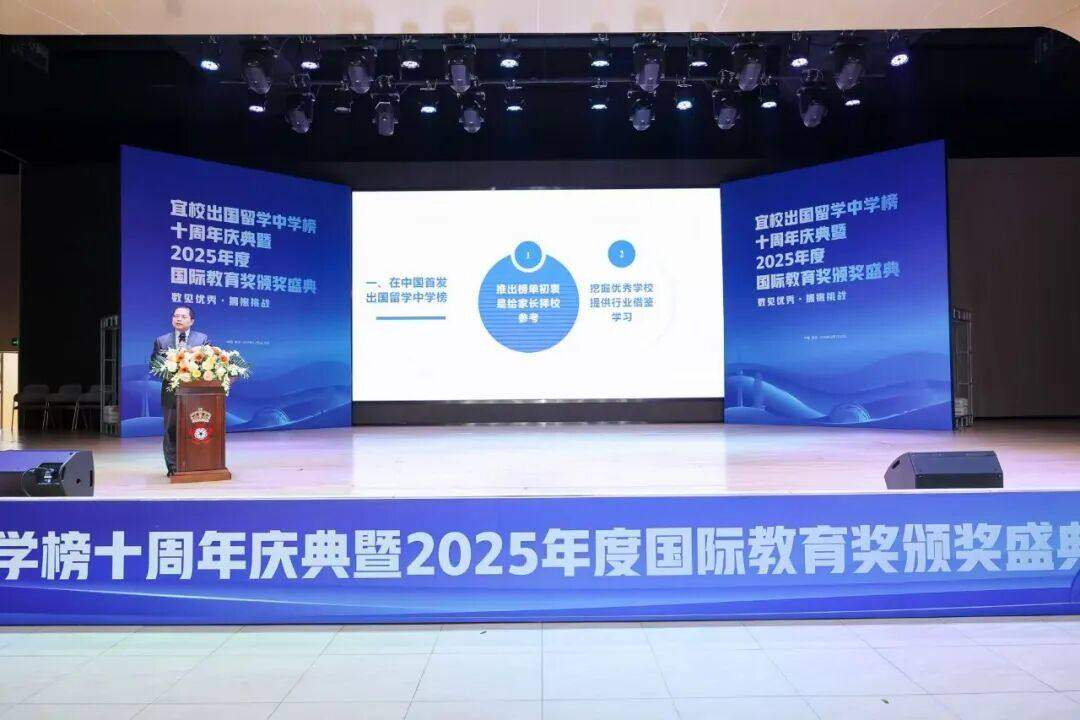今年正值宜校发布国内首个出国留学中学榜十周年。十年来,宜校榜单始终秉持中立与专业,未向学校收取任何上榜费用,已成为众多家庭择校的重要参考,在业界建立了良好声誉。同期举办的2025年度国际教育奖项评选,由来自北师大实验、深圳中学、人大附中等77位顶尖学校的专家评委共同投票选出获奖者,旨在表彰在行业推动、学校管理、教学、升学指导及招生宣传等方面的卓越个人与团队,其权威性与高含金量已获业内广泛认可。
