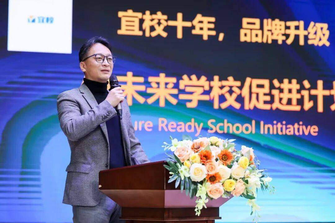 随后,宜校合伙人袁拔先生发布了“宜校AI未来学校促进计划”,标志着品牌开启新篇章。