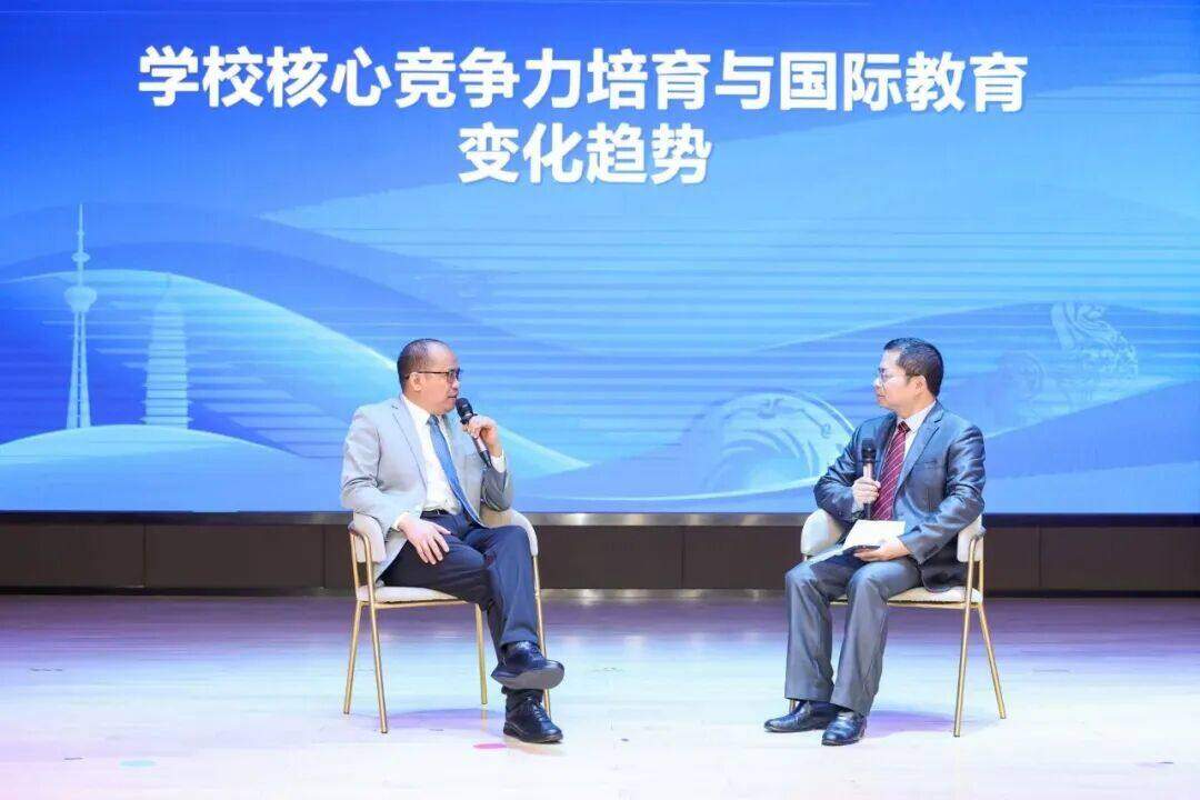 在对话环节,北京师范大学附属实验中学副校长/国际部主管校长郝智勇与肖经栋就“学校核心竞争力培育与国际教育变化趋势”展开了精彩对谈。