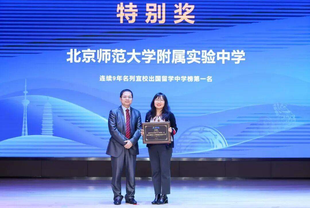 19日中午,首日活动进入高潮,隆重举行了“十年表现优秀学校”授牌仪式。十年优秀学校颁奖是宜校排行榜十年来的首次授牌,分量十足。其中,北京师范大学附属实验中学凭借连续9年位居榜单榜首的卓越表现斩获特别奖;