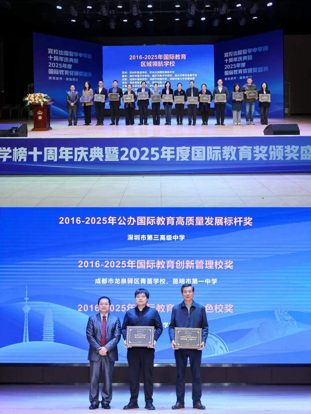 成都市龙泉驿区青苗学校、昆明市第一中学获得2016-2025年国际教育创新管理校奖;