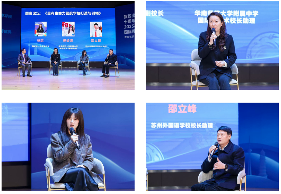 随后,一场以“具有生命力领航学校打造与引领”为主题的圆桌论坛举行,西安市铁一中学副校长张琪、华南师范大学附属中学国际部学术校长助理杨媛源、苏州外国语学校校长助理邵立峰分享了宝贵经验。