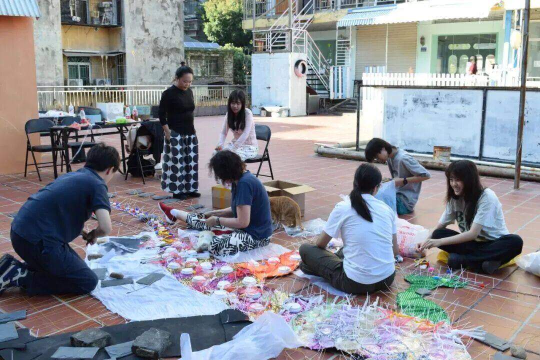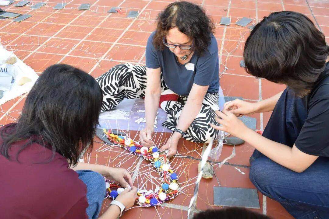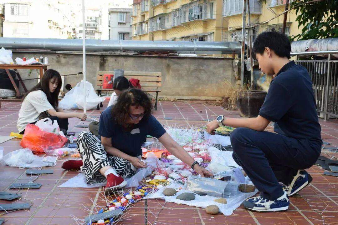 创作过程持续了两周。他们虽是高中生,但在华锐的国际化教育的浸润下,为团队带去丰富的关于跨文化表达的见解。他们凭借扎实的英文交流能力,还时常帮助其他成员沟通。而团队中的艺术从业者,也手把手指导他们塑料袋钩织等技法。