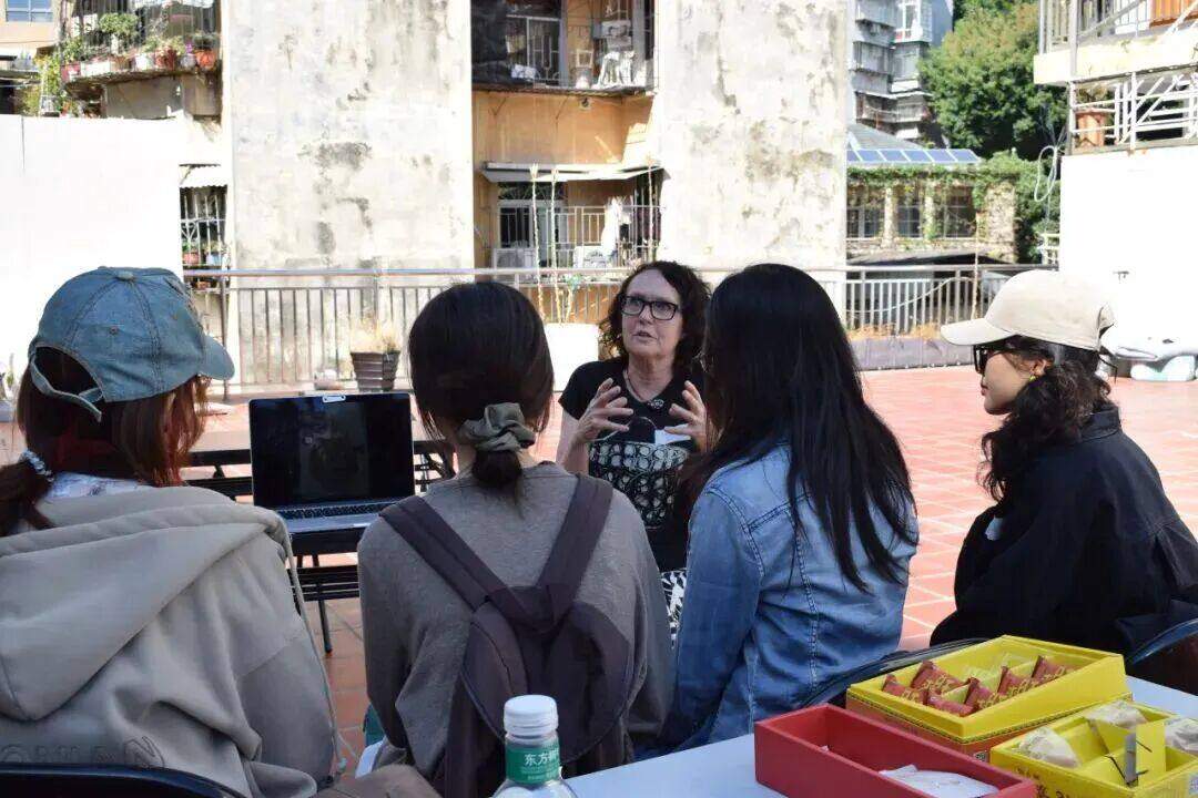 ▲学子们和团队成员正在创作中